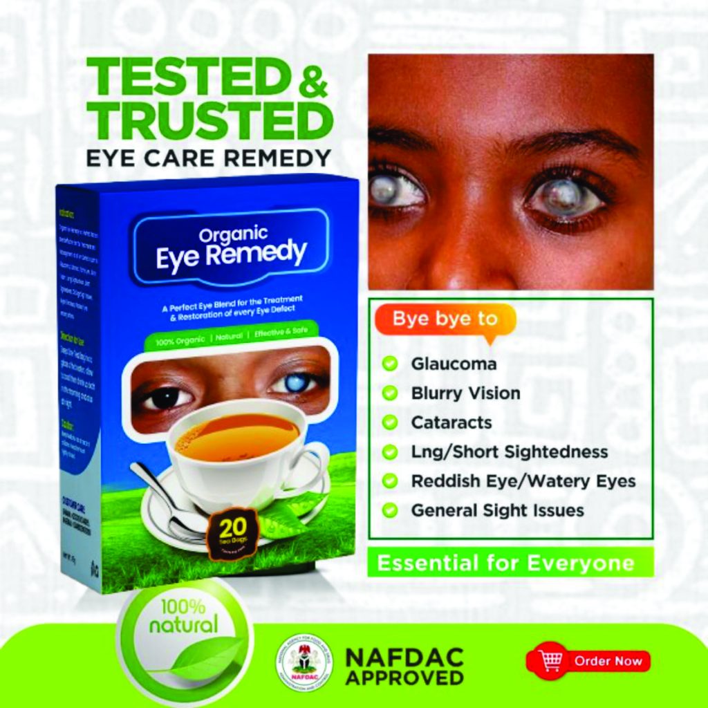 This package contains 1 pack of (Eye is the king of the body), a well researched and NAFDAC Certified Herbal remedy for all eyes problem. It contains 15 sachets and can be used with